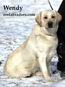 Email bestinshow@emlabradors.com or call (607) 302-2827 if you are interested in completing an adoption application for Cinder!